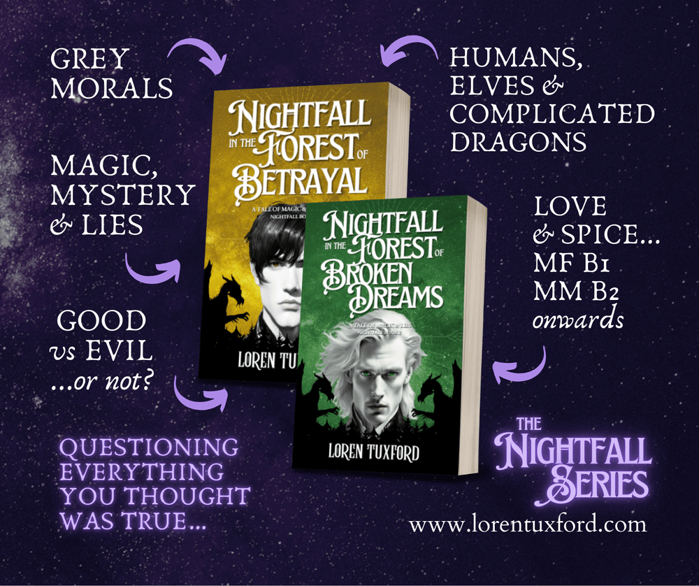 My first two books, Nightfall in the Forest of Betrayal and Nightfall in the Forest of Broken Dreams are the first in an ongoing series. Book three, Nightfall in the Forest of Destiny will be out early next year with about ten planned in total (I love a long-winded title haha).
